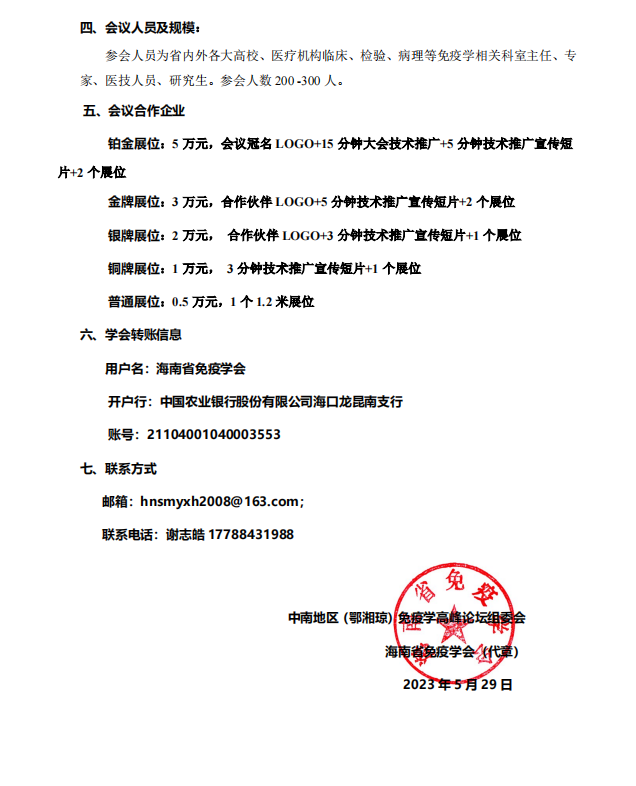 廣州市皓博儀器儀表有限公司將于7月12日至13日參加首屆中南地區(qū)(鄂湘瓊)免疫學(xué)高峰論壇暨海南省免疫學(xué)會第四次會員代表大會,以下是本次會議的通知。