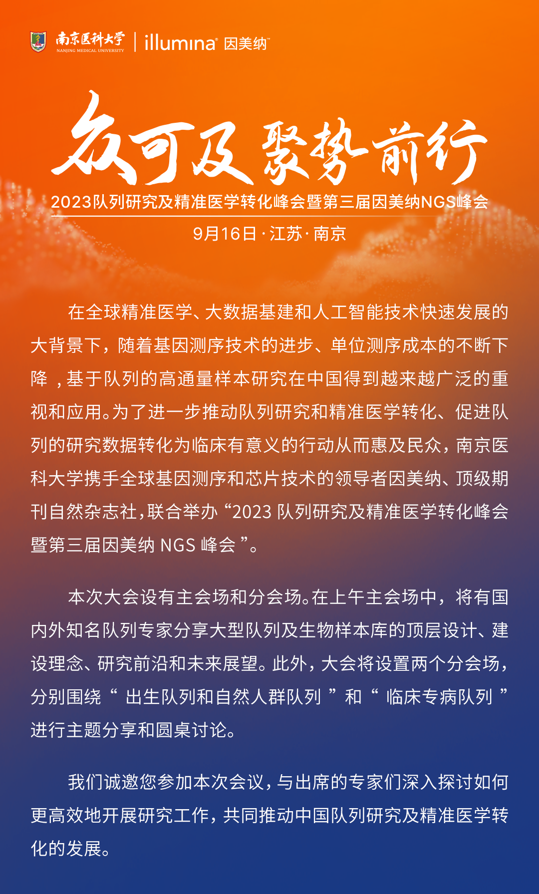 | 專家云集 | 2023隊列研究及精準(zhǔn)醫(yī)學(xué)轉(zhuǎn)化峰會暨第三屆因美納NGS峰會開啟注冊 |