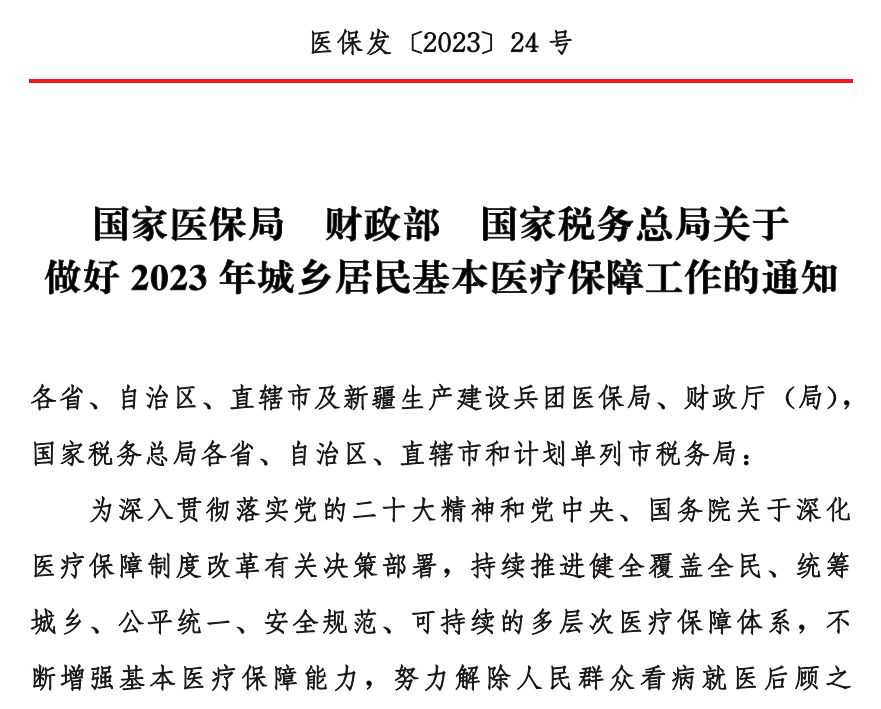 近日,國(guó)家醫(yī)保局發(fā)布《國(guó)家醫(yī)保局 財(cái)政部 國(guó)家稅務(wù)總局關(guān)于做好2023年城鄉(xiāng)居民基本醫(yī)療保障工作的通知》(以下簡(jiǎn)稱《通知》)。