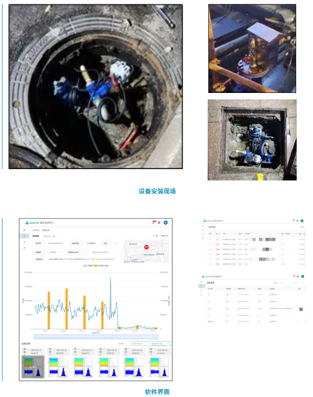 賽萊默為客戶(hù)提供了19套水聽(tīng)器套件,分散布置在DN200以上較大口徑的主干管上,固定安裝監(jiān)測(cè)漏水;另提供20套相關(guān)性噪音記錄儀輪換部署在小口徑的支管或者小區(qū)管道的閥門(mén)井或表井內(nèi),流動(dòng)式監(jiān)測(cè);并采用賽萊默本地自主開(kāi)發(fā)的AquaTalk®WLM管線漏水監(jiān)測(cè)平臺(tái),實(shí)現(xiàn)漏點(diǎn)探測(cè)報(bào)警及定位分析。