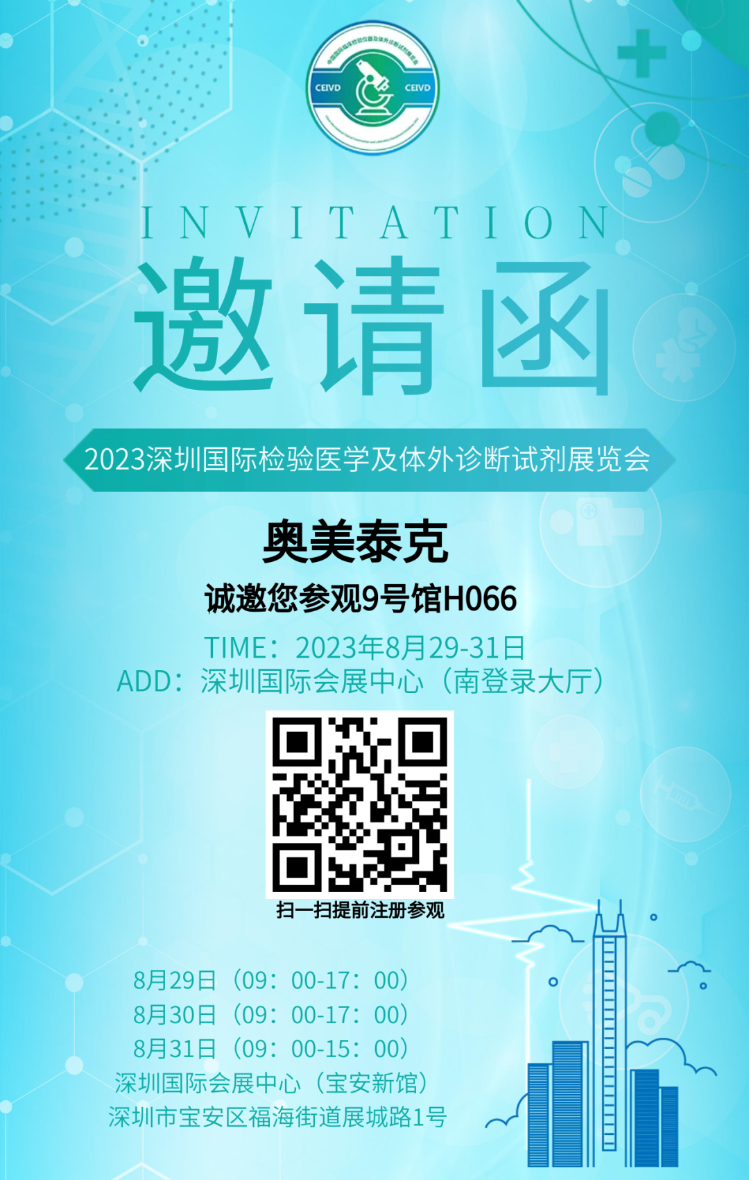 8月29-31日,2023深圳國(guó)際臨床檢驗(yàn)醫(yī)學(xué)及體外診斷試劑展覽會(huì)將在深圳國(guó)際會(huì)展中心隆重舉行。展品范圍涉及IVD體外診斷試劑、臨床檢驗(yàn)分析儀器、精準(zhǔn)醫(yī)療(分子/基因/腫瘤/癌癥/個(gè)體化標(biāo)靶等)、試劑原料、臨床實(shí)驗(yàn)室輔助用品等。