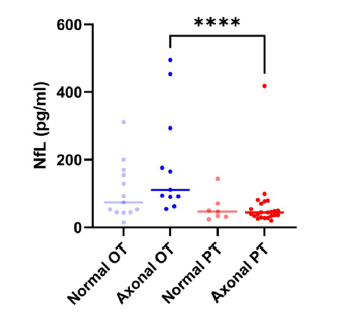到目前為止,還沒(méi)有生物標(biāo)志物可以預(yù)測(cè)這種副作用及其嚴(yán)重程度。神經(jīng)纖維絲輕鏈(NfL)是神經(jīng)元神經(jīng)絲蛋白(NF)的重要組成亞基,作為神經(jīng)元軸突主要的細(xì)胞骨架蛋白。既往研究表明病理?xiàng)l件下,如癡呆、多發(fā)性硬化癥、肌萎縮側(cè)索硬化癥等,NfL釋放量顯著增加。