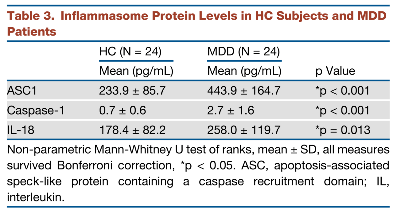 美國(guó)邁阿密大學(xué)精神病學(xué)和行為科學(xué)系發(fā)表的Neuron文章“Defective Inflammatory Pathways in Never-Treated Depressed Patients Are Associated with Poor Treatment Response”中發(fā)現(xiàn):未接受治療的抑郁癥患者(MDD)治療反應(yīng)差與炎癥通路缺陷相關(guān)!抑郁癥患者有18種抗炎和促炎標(biāo)志物濃度升高,6種細(xì)胞因子濃度降低。Ella檢測(cè)結(jié)果發(fā)現(xiàn)在MDD患者中炎癥小體蛋白(ASC1、Caspase-1、IL-18)表達(dá)增加,表明炎癥反應(yīng)激活。抑郁癥患者血漿對(duì)健康人外周血單核細(xì)胞具有免疫抑制作用,導(dǎo)致單核細(xì)胞/樹(shù)突狀細(xì)胞和B細(xì)胞活化降低,T細(xì)胞記憶降低[6]。所以,如果您真的抑郁了,請(qǐng)及時(shí)接受治療。