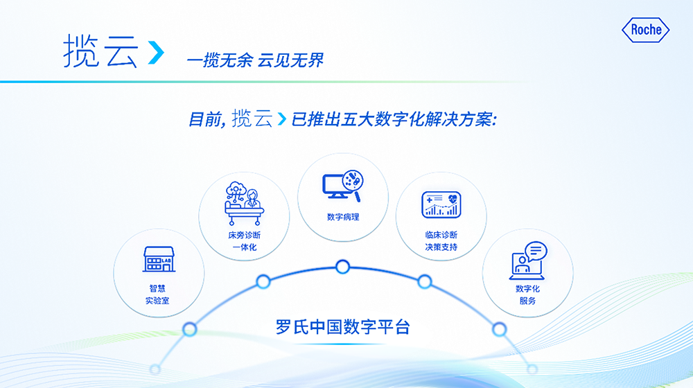 其中,羅氏診斷中國(guó)數(shù)字化創(chuàng)新解決方案——攬?jiān)?/strong>,圍繞“革新醫(yī)學(xué)檢驗(yàn)數(shù)字化”、“洞察醫(yī)患決策智能化”、“共建醫(yī)療生態(tài)個(gè)性化”三大戰(zhàn)略,展示了智慧實(shí)驗(yàn)室、床旁診斷一體化、數(shù)字病理、臨床診斷決策支持、數(shù)字化服務(wù)五大解決方案。