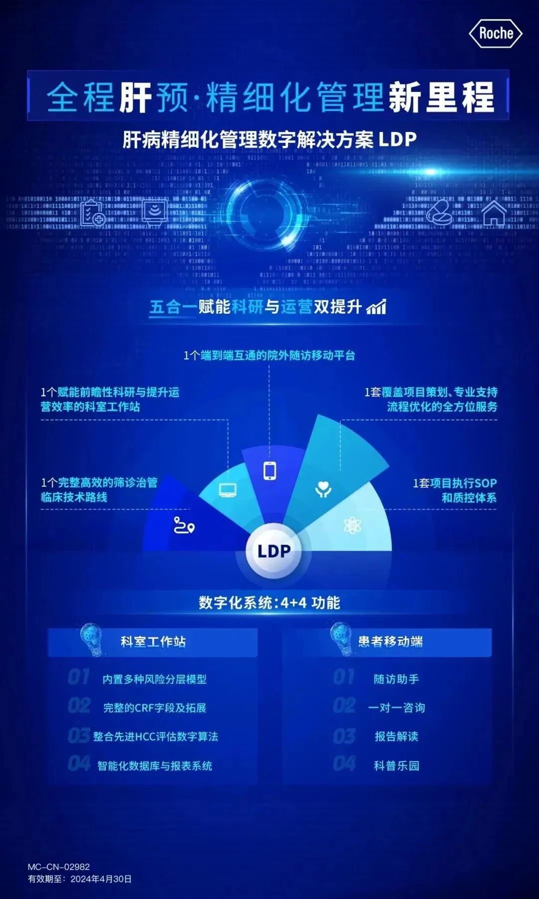 羅氏集團(tuán)肝癌篩診治管全病程管理數(shù)字解決方案包括肝病精細(xì)化管理數(shù)字解決方案和腫瘤全病程管理數(shù)字化解決方案,通過(guò)完整、高效的臨床技術(shù)路線,賦能科室工作站進(jìn)行前瞻性科研和提升運(yùn)營(yíng)效率,實(shí)現(xiàn)端到端互通的院外隨訪移動(dòng)平臺(tái),以五合一賦能科研與運(yùn)營(yíng)雙提升,并通過(guò)由多學(xué)科會(huì)診模塊、隨訪模塊、數(shù)據(jù)庫(kù)及分析模塊構(gòu)成的“三位一體”推動(dòng)腫瘤綜合診治發(fā)展。