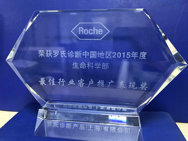 羅氏診斷產(chǎn)品(上海)有限公司在2015年里舉行了全國經(jīng)銷商表彰大會,廣州市皓博儀器儀表有限公司榮獲羅氏診斷中國地區(qū)2015年度 生命科學部”最佳行業(yè)客戶推廣表現(xiàn)獎“