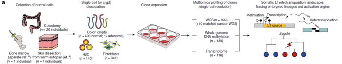 這項(xiàng)研究由共同第一作者Chang Hyun Nam(KAIST的研究生)和Jeonghwan Youk博士(KAIST的前研究生)領(lǐng)導(dǎo),他們對(duì)28人的皮膚(成纖維細(xì)胞)、血液、結(jié)腸上皮組織等899個(gè)單細(xì)胞進(jìn)行了全基因組序列分析。該研究揭示了正常細(xì)胞中L1跳躍基因的激活,導(dǎo)致基因組突變隨著時(shí)間的推移逐漸積累。