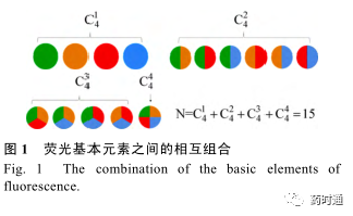 基于水解探針和分子信標(biāo)探針的多重?zé)晒舛?PCR 技術(shù)的優(yōu)點(diǎn)是簡便快捷,然而受儀器熒光檢測通道的限制,往往最多只能達(dá)到四重或五重檢測。組合探針編碼 (Combination probecoding) 技術(shù)的開發(fā),使得目前的多重實時核酸擴(kuò)增可檢測的靶標(biāo)數(shù)目多于儀器可檢測的數(shù)目。通過對 4 種不同的熒光基團(tuán)進(jìn)行相互組合可以形成15 種指示探針 (圖 1),在多重反應(yīng)體系中加入多種靶序列特異的置換探針 (Displacing probes),那么在檢測通道有限的情況下仍能夠?qū)崿F(xiàn)對多種不同的靶標(biāo)同時進(jìn)行擴(kuò)增和檢測。Huang 等利用多色組合探針編碼技術(shù) (MCPC) 實現(xiàn)了對 8 種食源性病原菌的鑒定以及通過 4 色組合探針編碼技術(shù)實現(xiàn)了對 15 種不同型別的 HPV 病毒進(jìn)行分型 [11-12] 。