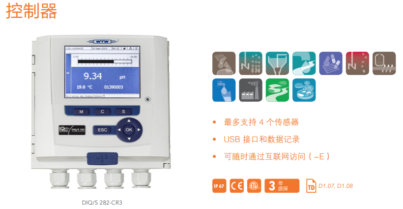 用于中小型廢水處理廠 用于中小型廢水處理廠的控制器,包括 USB 接口和內(nèi)部數(shù)據(jù)記錄儀,最多支持 4 個(gè)傳感 器,可測(cè)量所有參數(shù)。