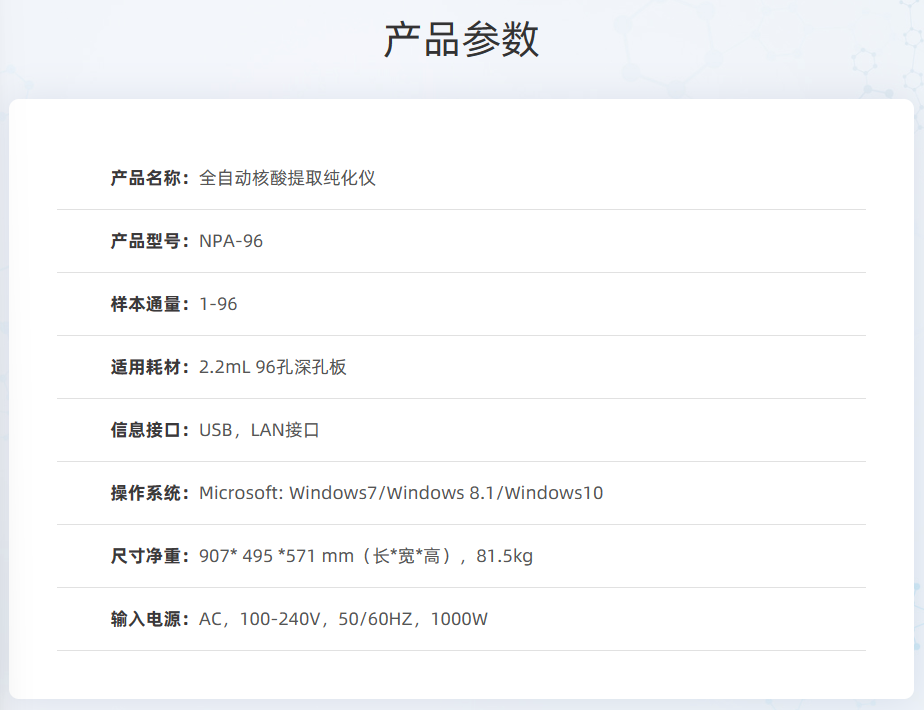 裂解和洗脫溫度設置范圍廣,洗脫工位支持制冷保存功能;整體式磁棒設計,磁場均勻,且可單孔更換,維護簡便;深孔耗材板,專屬快速提取試劑,最快8min實現核酸的高效提取。